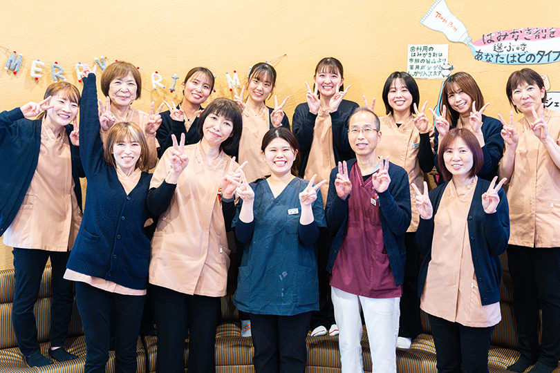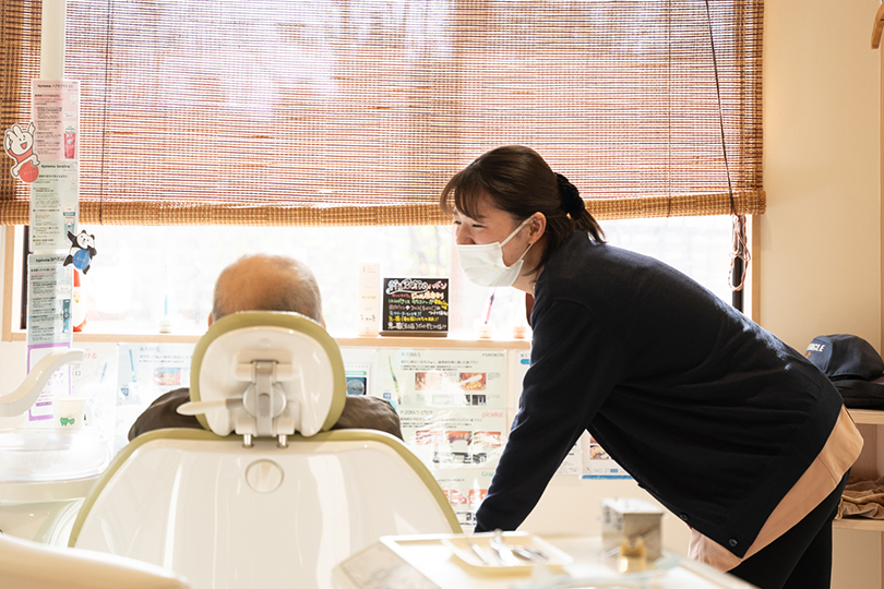 スタッフ一同が笑顔でお迎えします。初めての方も、歯医者が苦手な方も、緊張なく通っていただけるよう、ゆったりとした雰囲気づくりを大切にしています。